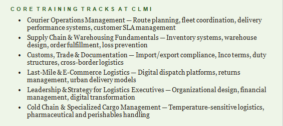 The Courier and Logistics Management Institute (CLMI) was founded on a simple but urgent conviction — that the people who move the world deserve world-class training.